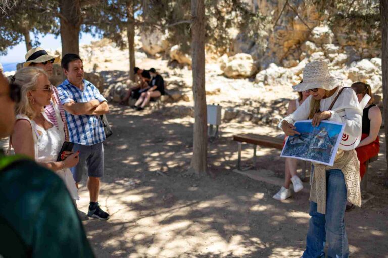 Experience the best of Rhodes in one unforgettable day with the Grand Tour of Rhodes, a full-day guided journey through the island’s history, culture, and natural beauty. Discover the ancient city of Kamiros, one of the three original city-states of Rhodes. Head into the mountains to the traditional village of Siana, where you’ll taste local honey, souma, and other regional products. At Monolithos, take in the breathtaking views of the cliffside castle ruins and enjoy free time for lunch in a local village tavern with stunning panoramic views. Finally, explore the iconic village of Lindos with your guide—once the major ancient city-state on Rhodes, now visited for its whitewashed houses and charming, narrow streets.